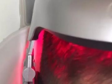 Capacete que utiliza tecnologia de laser e LED para estimular o crescimento capilar, sendo um tratamento para alopecia androgenética e outras condições que causam queda de cabelo.